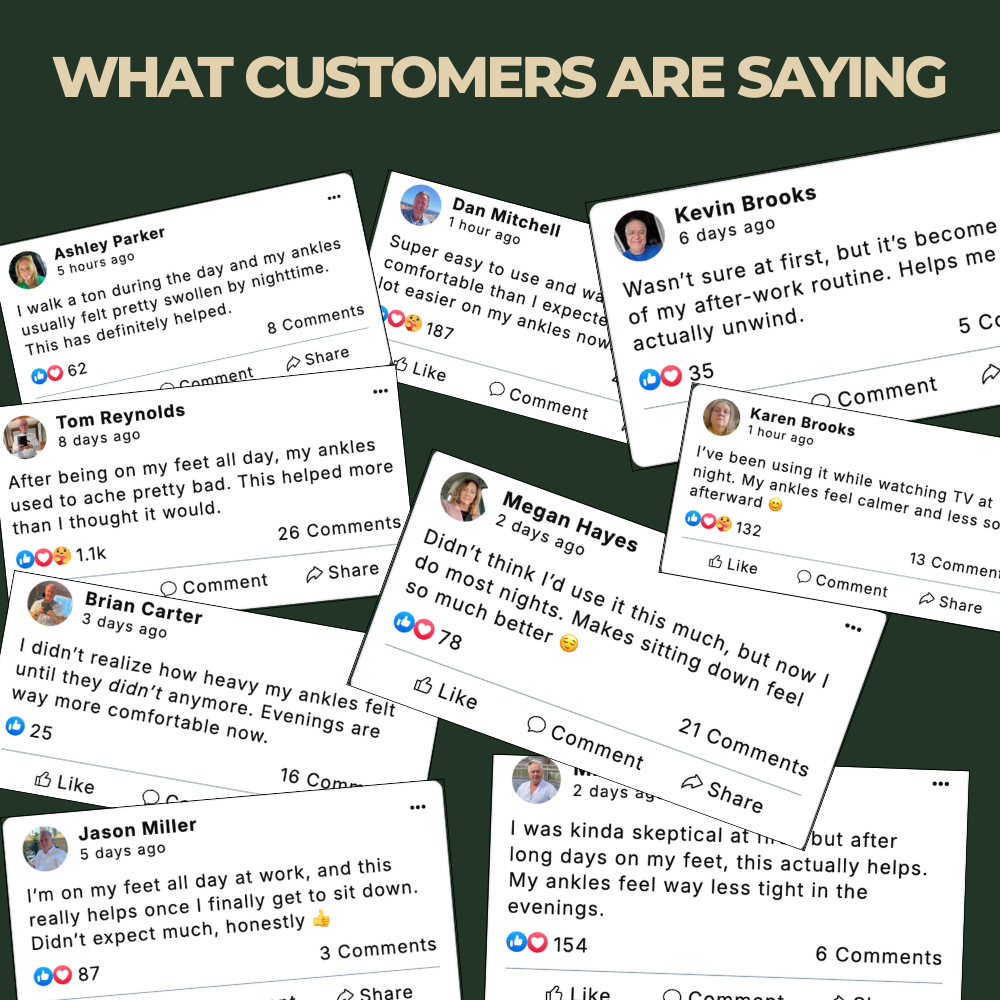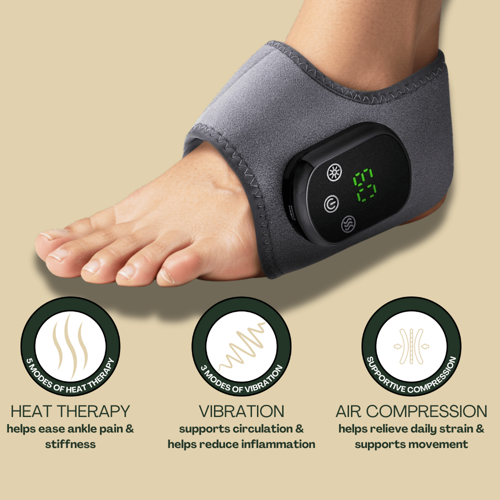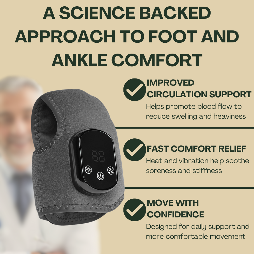 LorLina™ Ankle Ease is designed to support everyday ankle comfort for common problems like stiffness, soreness, tightness, and that “heavy” end-of-day feeling after standing, walking, sport, or long periods of sitting. It works by combining dynamic compression, gentle heat, and vibration to help you relax the area and feel more comfortable. It is not a medical device and it does not diagnose, treat, cure, or prevent any disease. If you have a diagnosed condition or severe symptoms, speak with a healthcare professional.