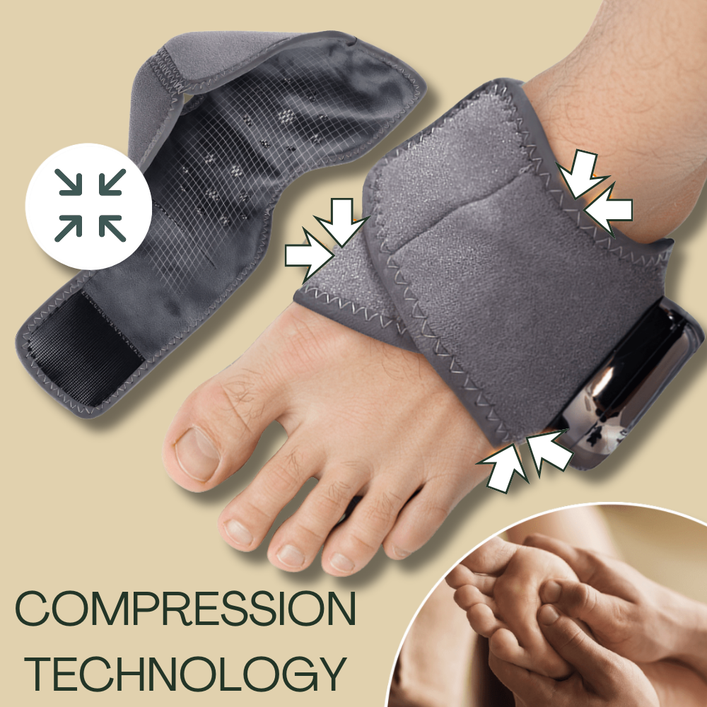 Yes. The wraparound design is adjustable to fit most ankle sizes comfortably. It’s lightweight, flexible, and designed to stay in place during use, whether you’re sitting or lying down. For the best fit, position it evenly and avoid over-tightening.