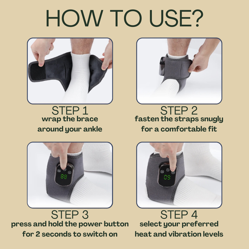 Heating pads mainly provide surface warmth. Braces mainly provide support and stability. LorLina™ Ankle Ease combines heat + vibration + dynamic compression in one wrap, giving a more complete comfort routine for tired ankles, especially after long days on your feet.
